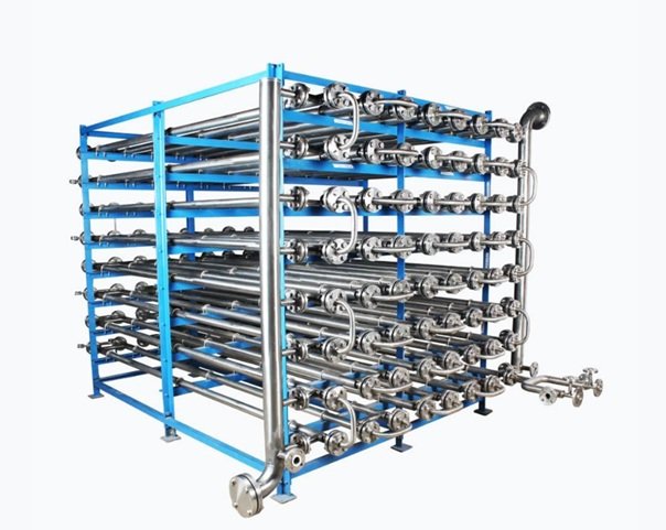 It consists of a number of "pinched tubes"—tubes with specially contoured surfaces that enhance mixing and heat transfer.